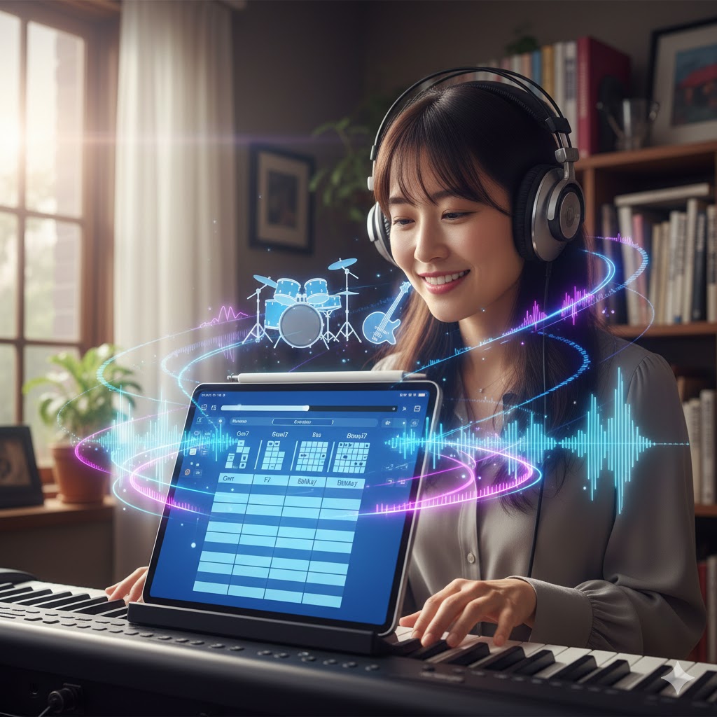現代の独学者にとって最強の味方が「スマートフォンアプリ」です。一昔前であれば、マイナスワンCD(伴奏のみのCD)を使っていましたが、今はもっと便利なツールがあります。特に、ジャズの練習に欠かせないのが「自動伴奏アプリ」です。