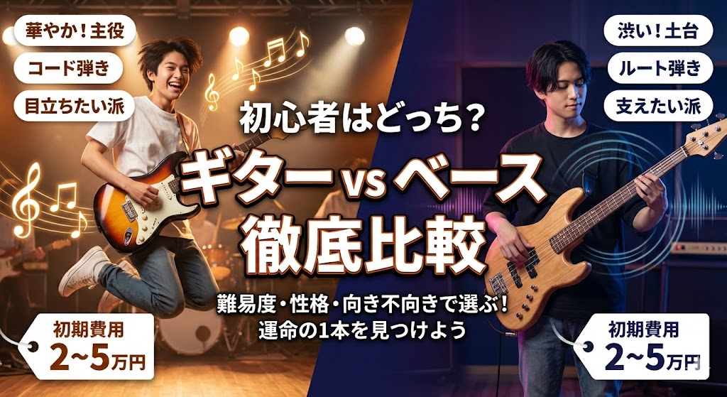 音楽を始めたいと思ったその瞬間が、あなたの新しい人生のスタートラインです。しかし、いざ楽器店やネットショップを覗いてみると、多くの人が最初の大きな選択に悩みます。それは「初心者はギターとベースどっちを選ぶべきか」という問題です。ステージ... -