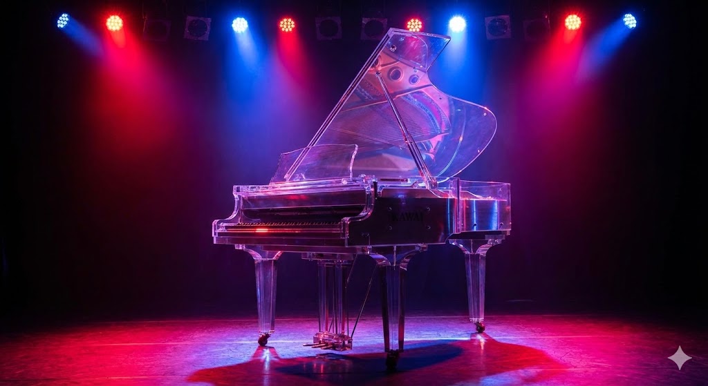 YOSHIKIさんのピアノ演奏には、他の誰にも真似できない独自のスタイルがあります。まず視覚的に強烈なインパクトを与えるのが、彼が愛用している「クリスタルピアノ」です。これはカワイ(河合楽器製作所)製の特注モデルで、透明なアクリル素材で作られています。照明を浴びて輝くその姿は、まさに幻想的。しかし、アクリル素材は木製よりも音が硬くなりやすく、響きをコントロールするのが難しいと言われています。彼はこの難しい楽器を完全に自分の体の一部として使いこなしています。